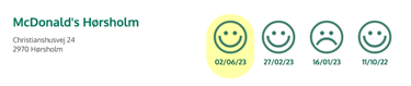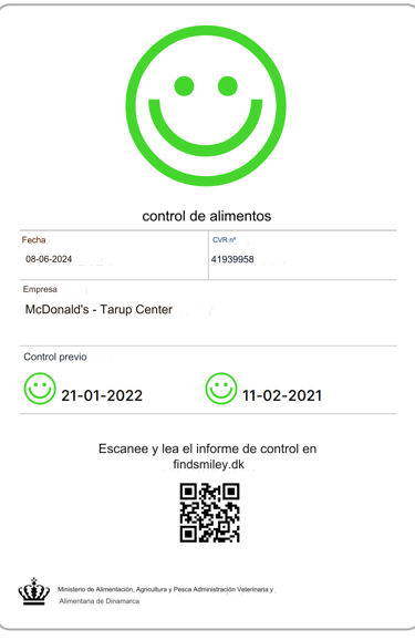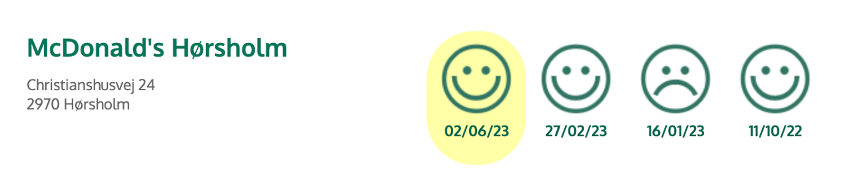 Imaginem que estem al gener del 2023. Volem dinar al restaurant Mc Donald’s del carrer Christianshusvej 24 de Hørsholm i veiem que al rètol de l’entrada, l’emoticona mostra una cara enfadada, que es veu a la imatge següent.